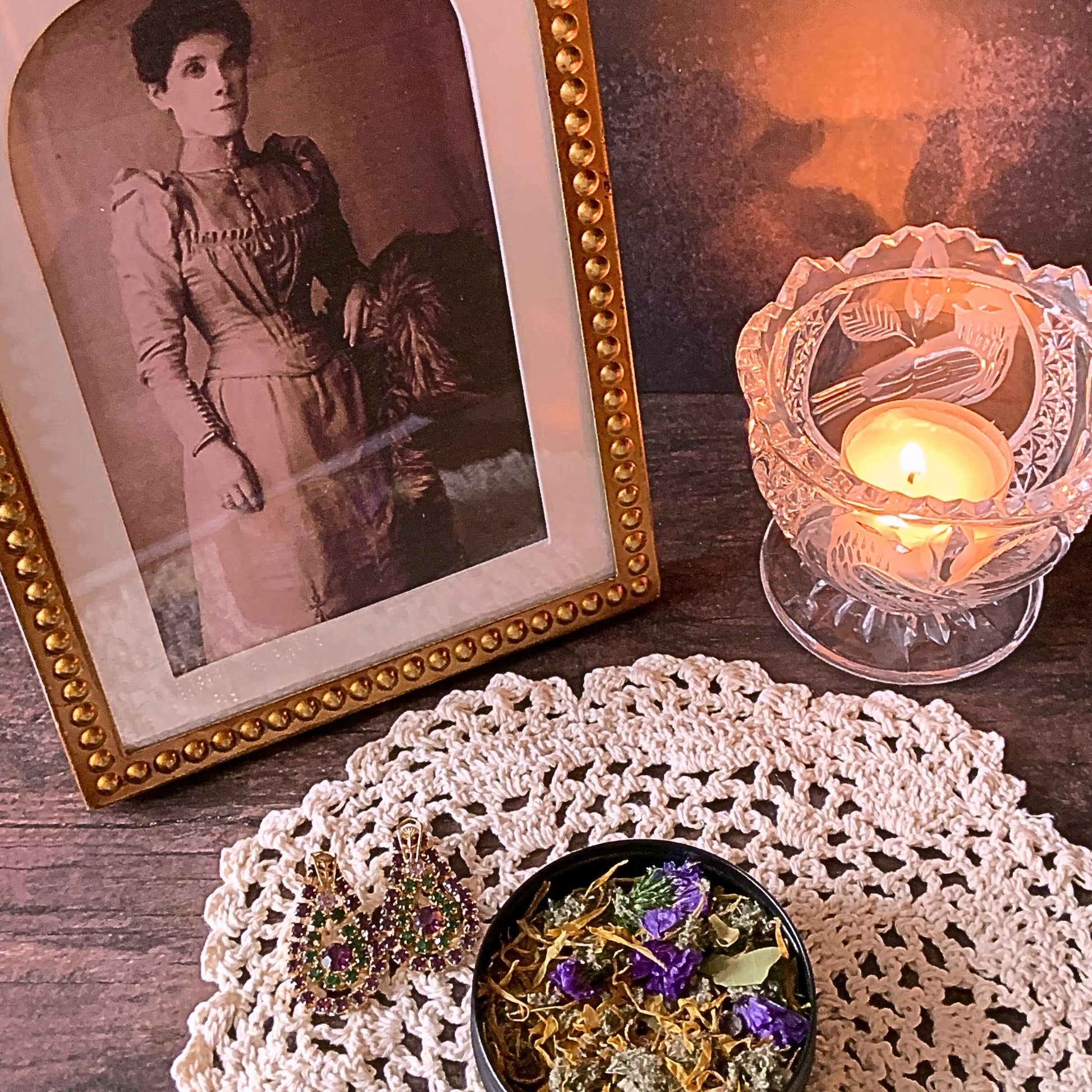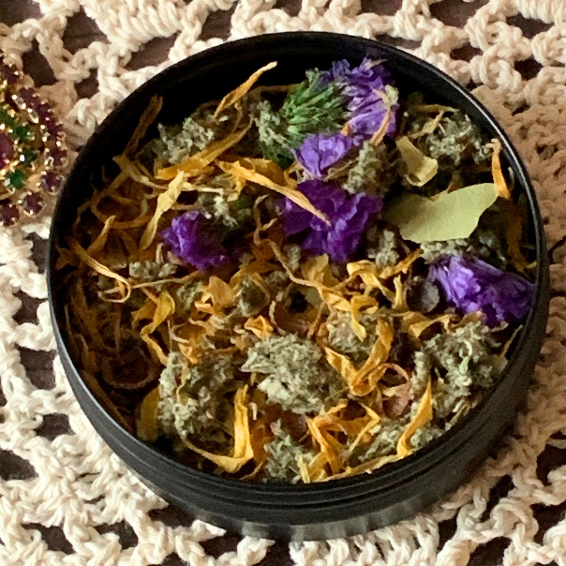 Infused with Mugwort to aid in vivid dreams, Rosemary to foster remembrance, and Bay Laurel to facilitate meaningful communication, this blend supports the reception of blessings and guidance from your ancestors. Enhanced with flower petals, berries, and other proprietary herbs, each ingredient has been thoughtfully chosen for its spiritual and practical benefits.