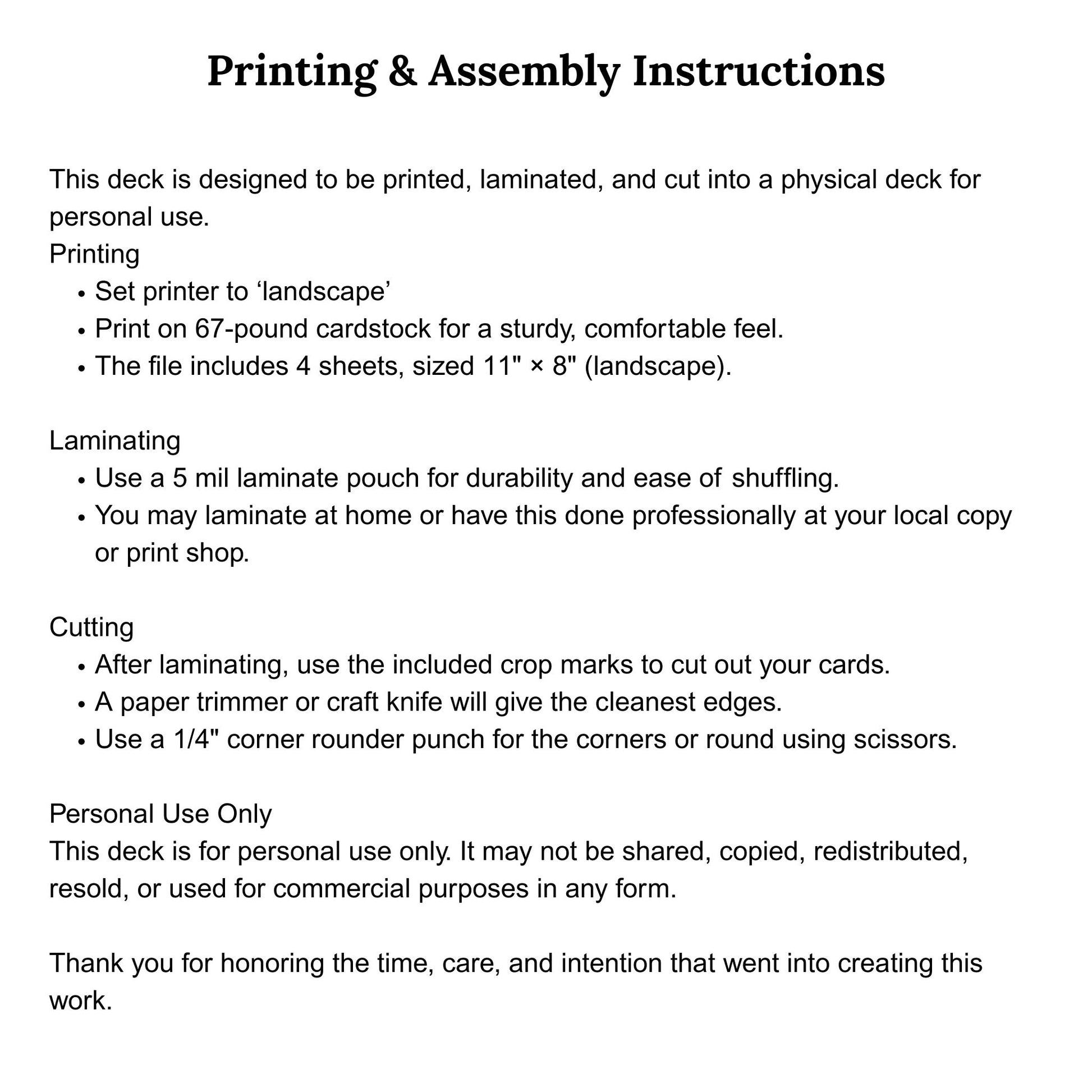 This is a digital download designed to be printed, laminated, and cut into a physical deck for personal use.
