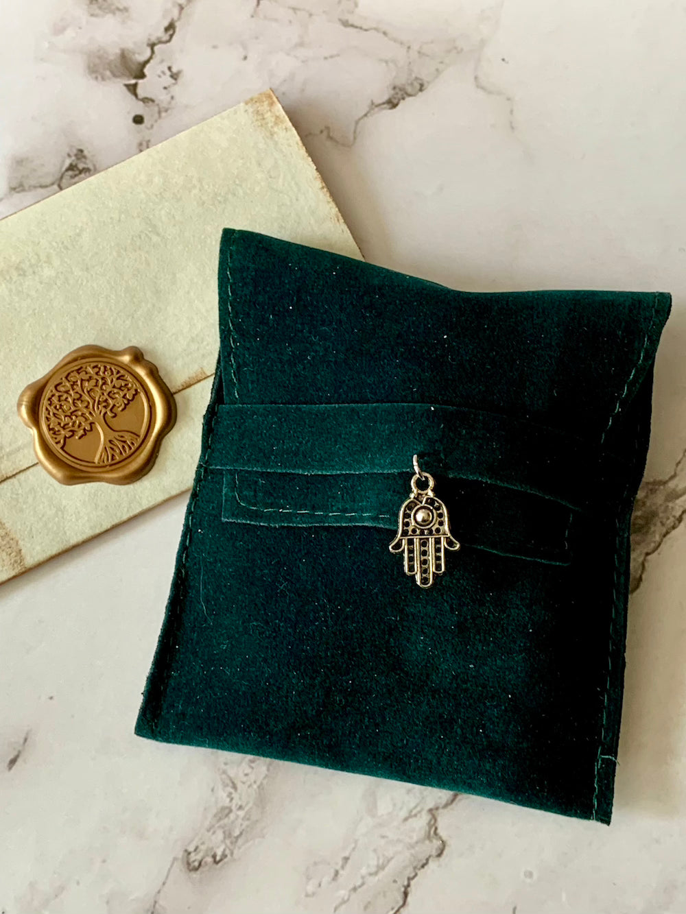 A healer of spirit and soil, Rowena Sagewell walks where wild things grow and energy flows. Her magic lies in restoration—of balance, of breath, of what has been broken. With calm hands and ancient knowing, she tends wounds seen and unseen. Her deep green pocket, adorned with a protective Hamsa charm, holds the tools of quiet power and sacred renewal.